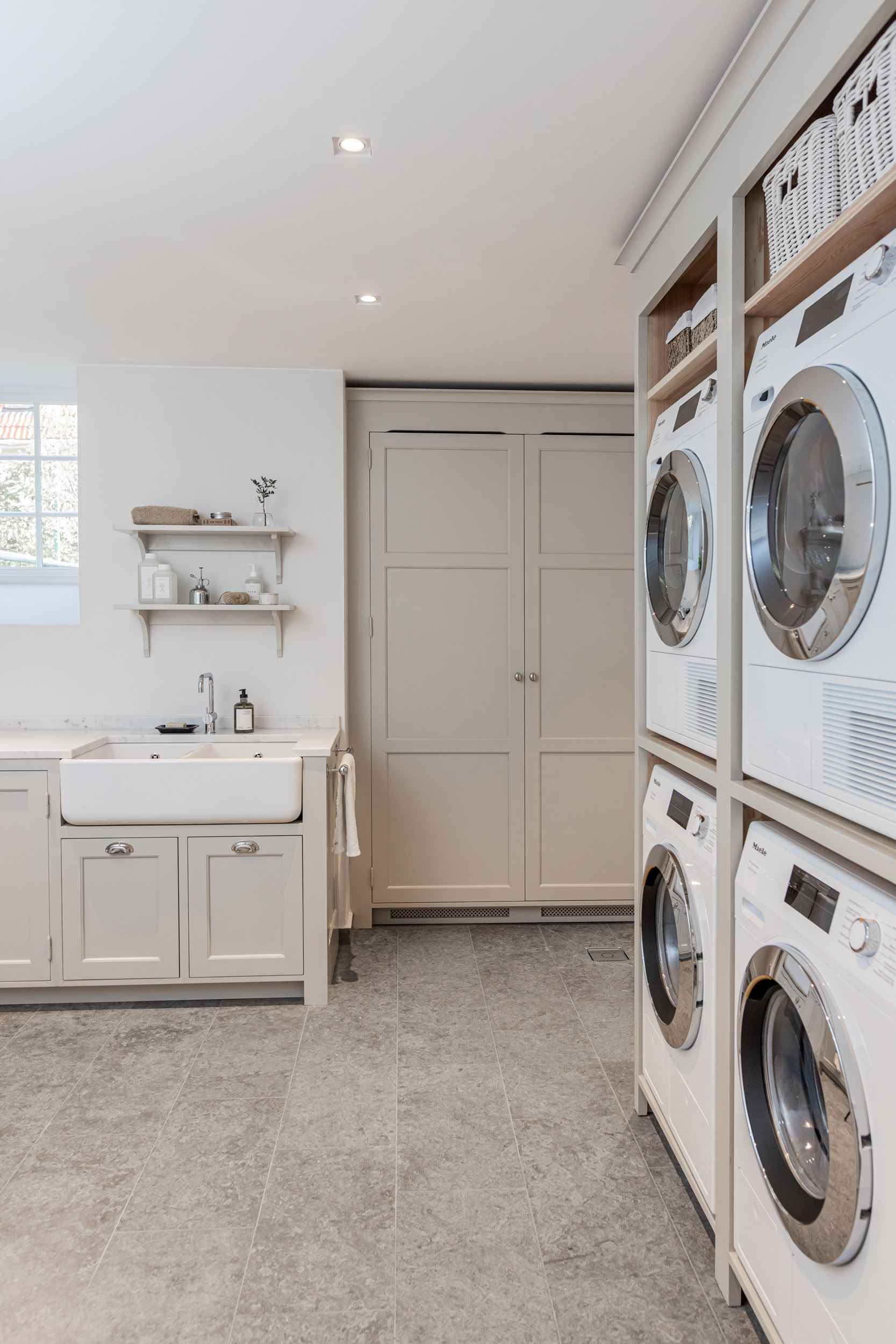 Platsbyggd inredning (Legacy/Modernist) anpassas efter rummets mått och förutsättningar. Det ger bra proportioner och utnyttjar ytan effektivt. Alternativet är våra Cabinette-skåp, som har fasta mått och lite enklare design.