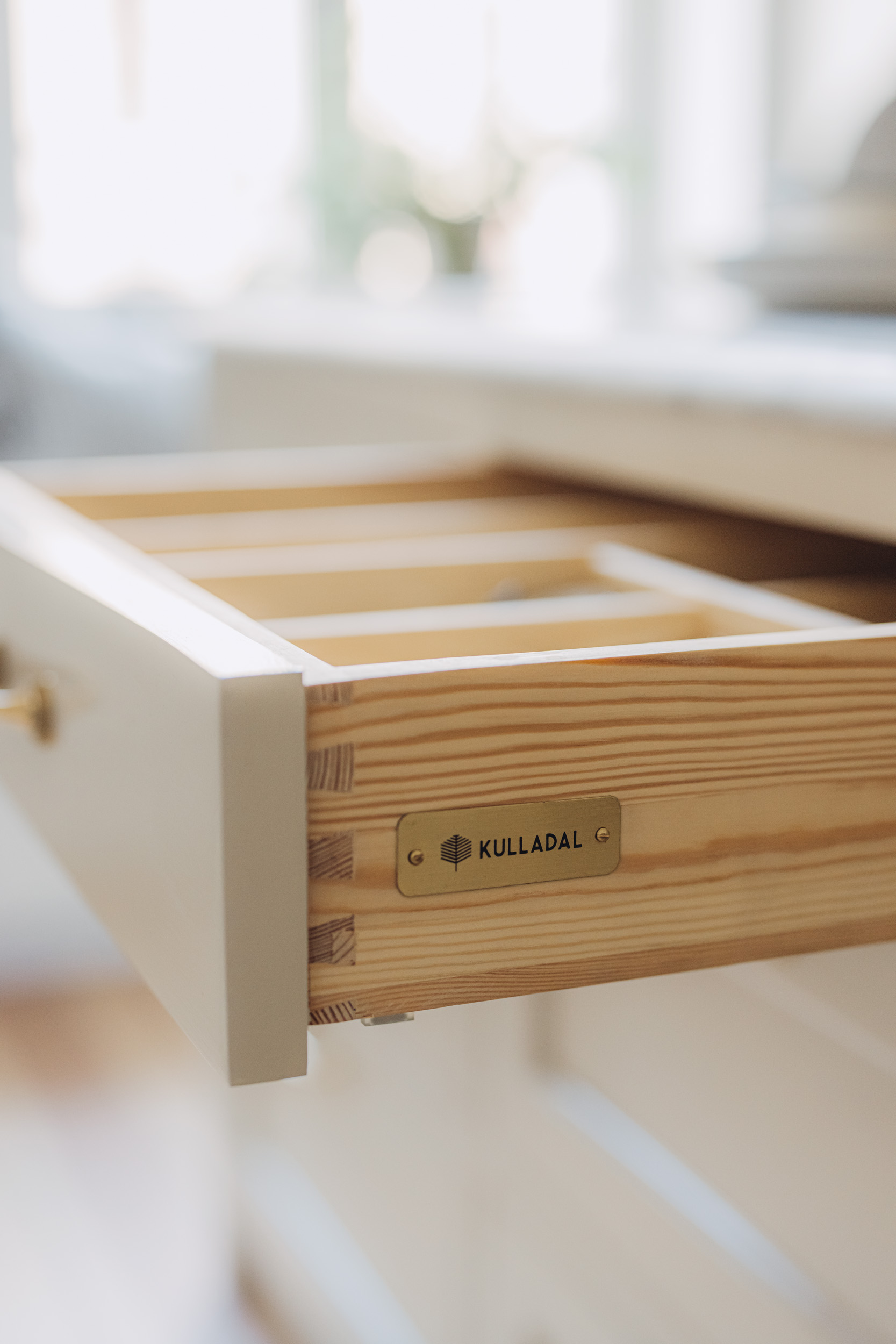 Kulladals stommars byggs av massiv furu, nästintill kvistfri. Luckorna tillverkas av furu eller al med speglar av furuplywood. Lådorna är massiva och sinkade – en konstruktionsmetod som ger stark och stabil fog. Massivt trä innebär att materialet är helt igenom trä – inte ett tunt ytskikt av trä eller träliknande material på en kärna av spånskiva eller MDF.