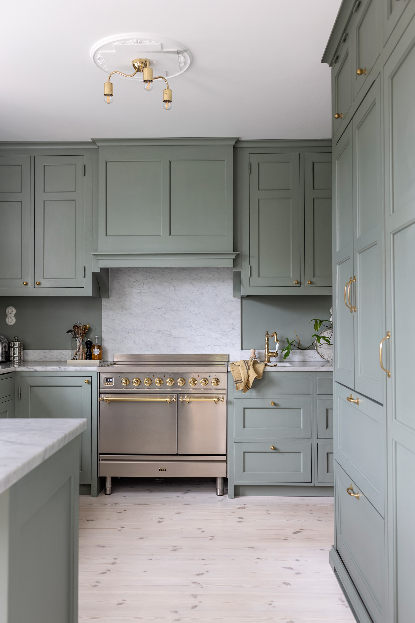 Vi har tagit fram en egen färgpalett med flera kulörer som du kan välja på. Ditt kök grundmålas i snickeriet, två gånger, och slutstryks sedan hemma hos dig av en professionell linoljemålare. Att slutmåla på plats skapar den bästa slutfinishen.
