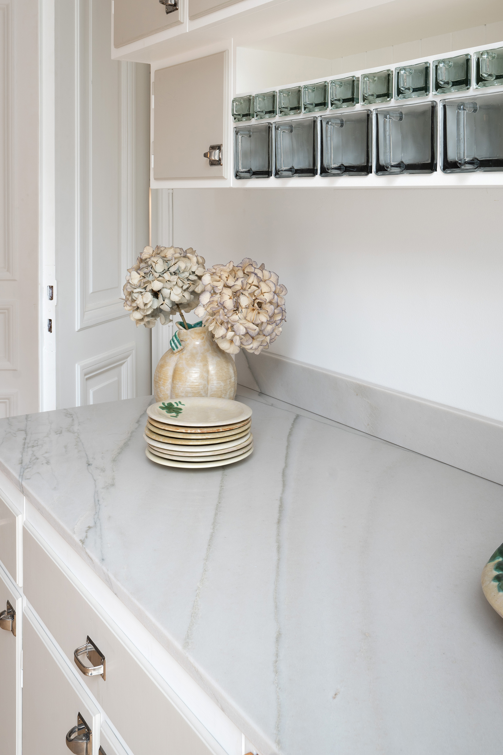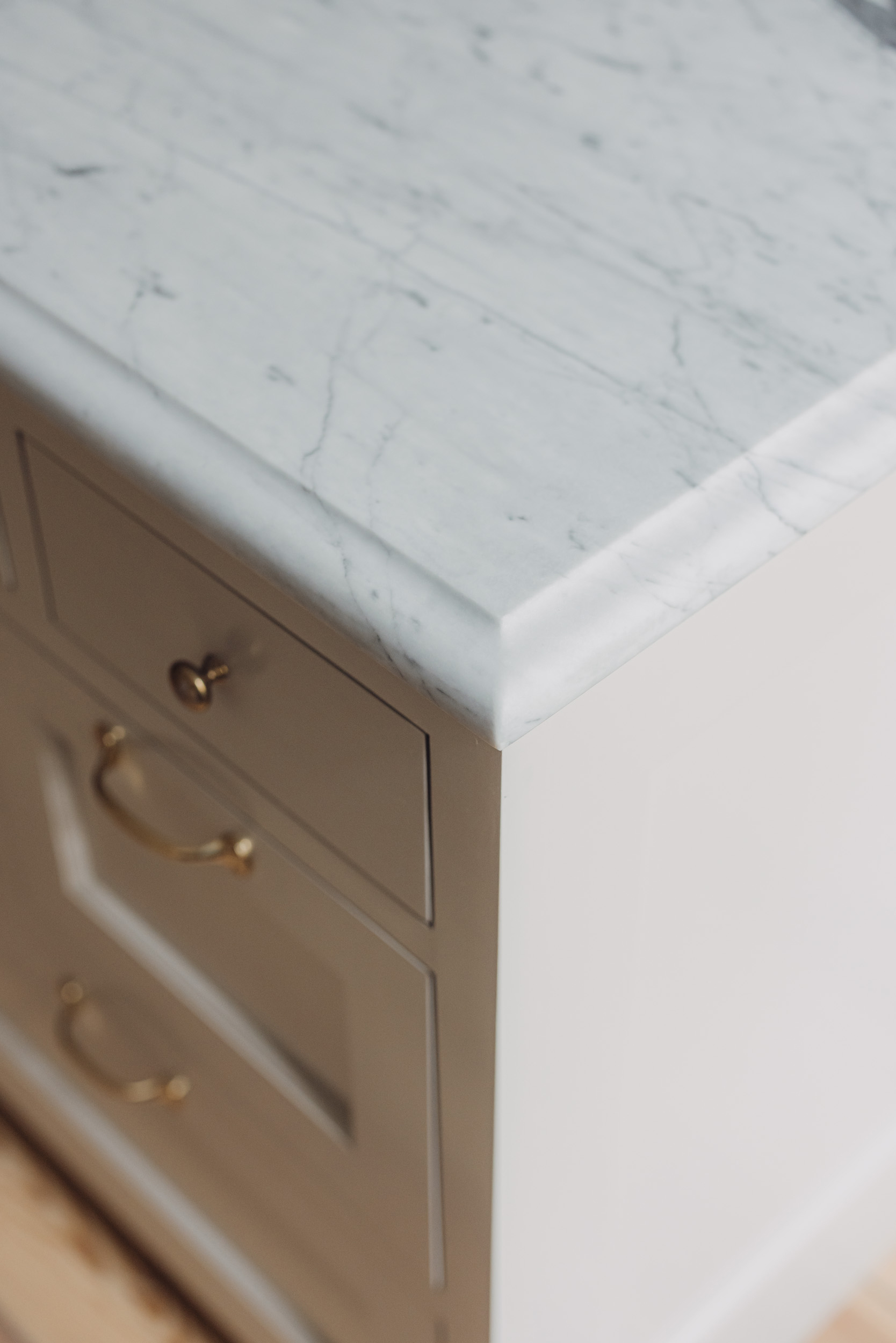 Marmor bildas av omkristallisering av kalksten. Det är en tidlös och vacker sten som passar väl in i massiva träkök och som ofta var valet i kök från förra sekelskiftet. Den mest välkända marmor är Bianco Carrara från Italien men det finns många andra marmorsorter, bland annat den vackra, svenska Kolmårdsmarmorn. Marmor är tålig mot både repor och värme men känsligt för syra, såsom vin, kaffe, vinäger, citron och juice, och skall aldrig rengöras med traditionella rengöringsmedel som riskerar att skada ytan. Varmt vatten och mikrofibertrasa alternativt grönsåpa räcker för vardaglig skötsel. Bänkskivor i marmor kan fås med antingen polerad eller matt yta. Carrara marmor finns i tre klasser baserade på stenens kvalitet och ljushet. Kulladal samarbetar enbart med leverantörer till den finaste kategorin C.