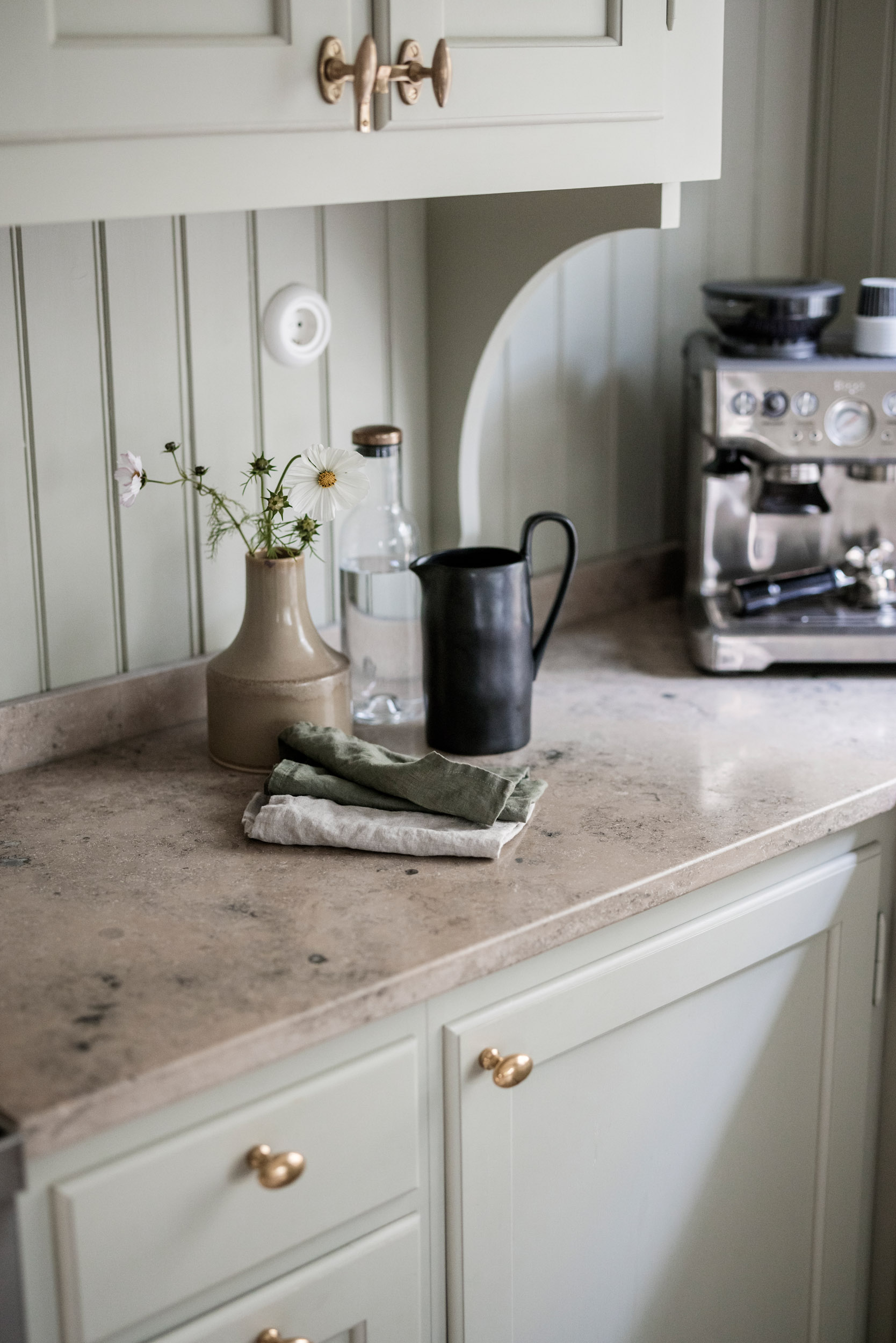 Vi utgår från hur köket ska användas och vilken känsla ni vill skapa. Trä ger värme och mjukhet. Natursten tillför tyngd och variation. Rostfritt är praktiskt och tåligt. Ofta handlar det om att hitta en balans mellan funktion, uttryck och hur mycket underhåll man är beredd att lägga.