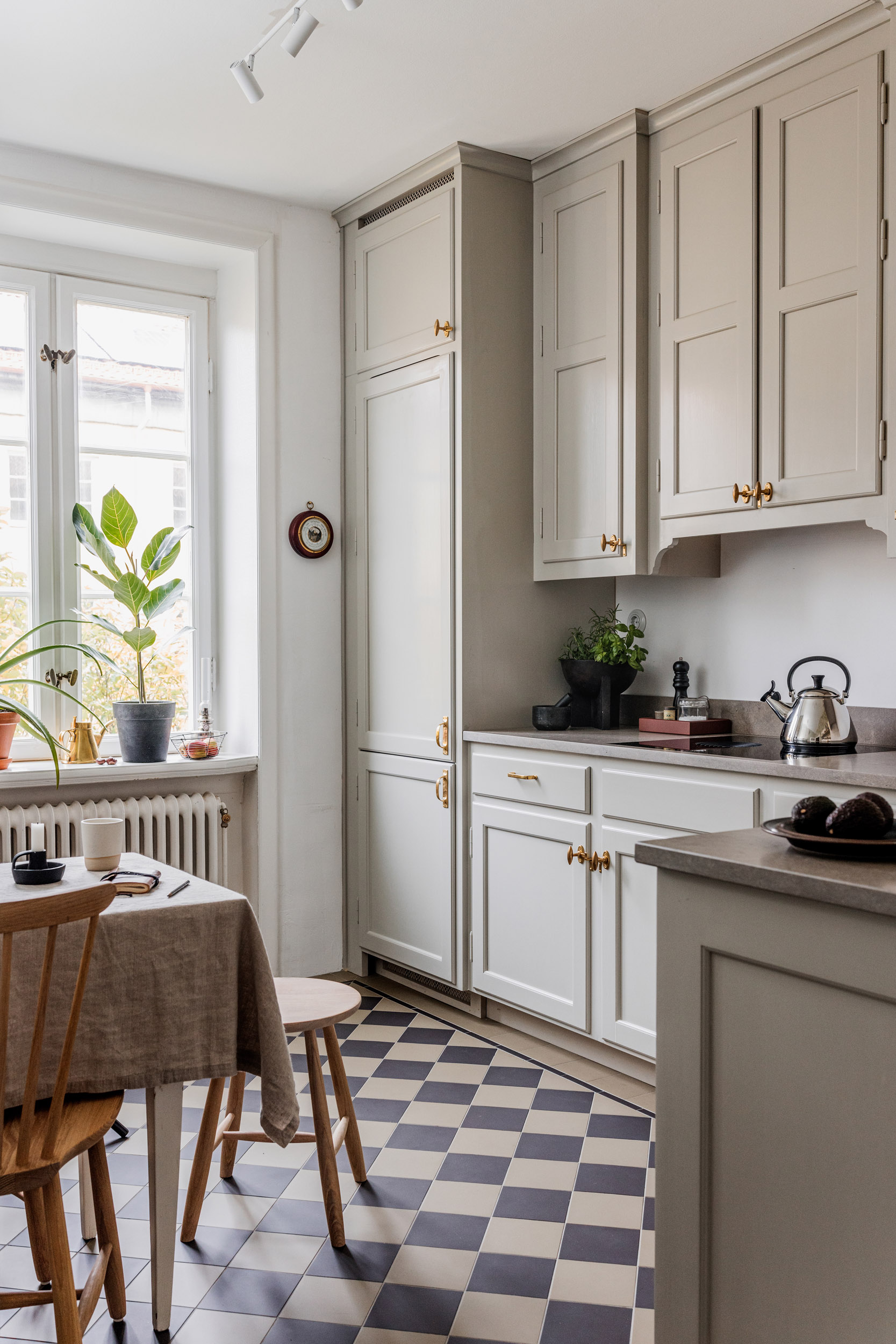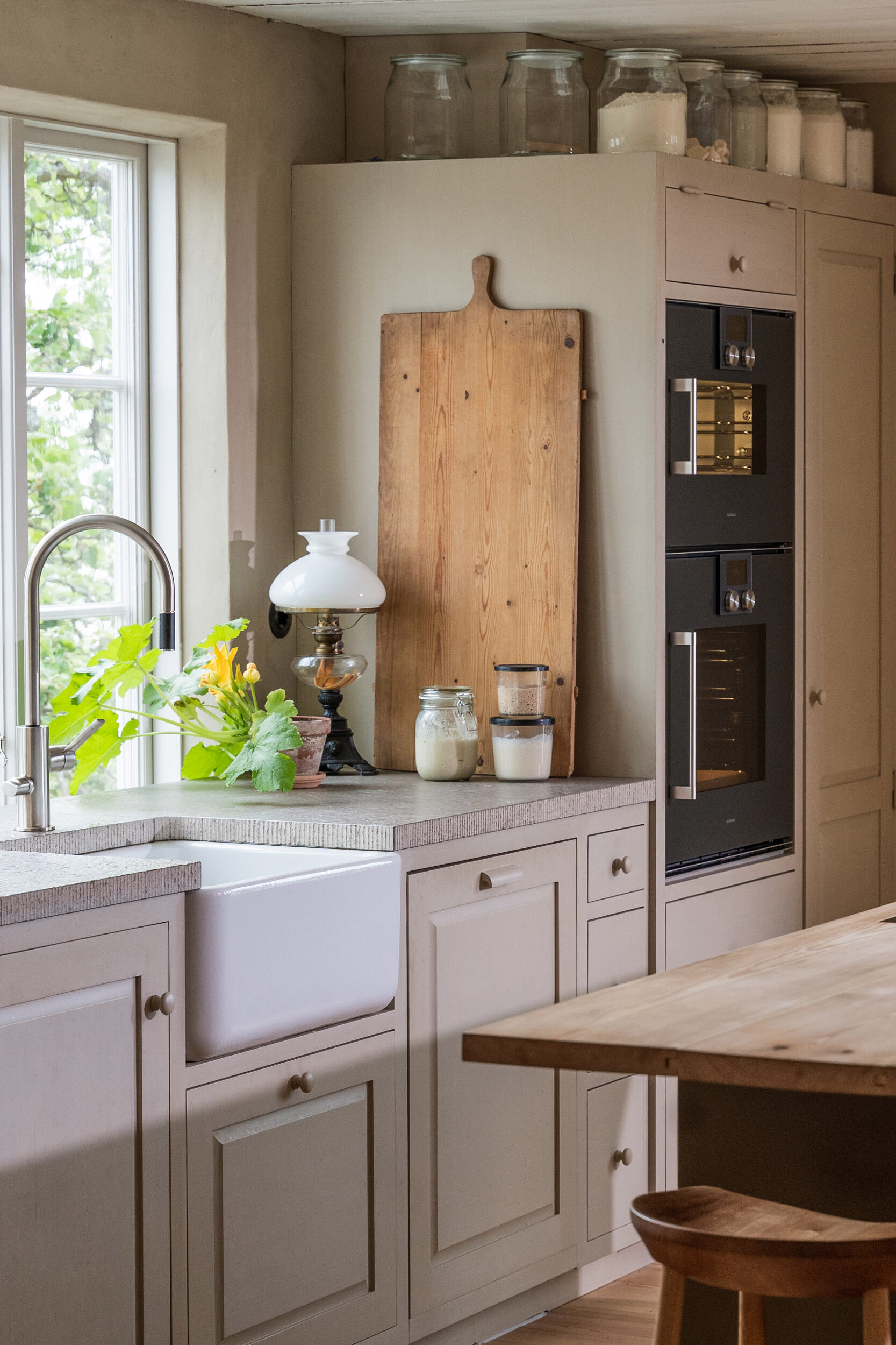 I många Legacy-kök väljer man utanpåliggande sockel. Det ger köket en mer “platsbyggd” karaktär och ligger nära hur kök byggdes historiskt.